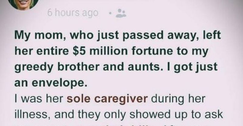 While my mom battled cancer, I was her caregiver, nursing her until her final days. But when she passed away, my mom split her money between my money-hungry...
