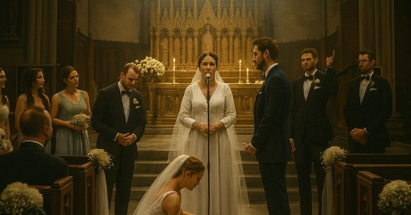 The cathedral glowed with a beauty that seemed almost unreal. White hydrangeas trailed down the altar steps, their blossoms dusting the aisle like scattered pearls. Sunlight broke through...