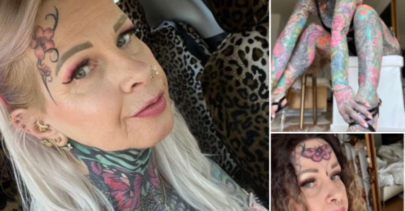 Grandmother with entire body covered in tattoos shares s.h.oc.k.i.n.g transformation photos from 10 years ago