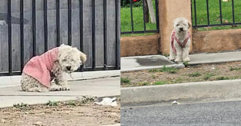 Abandoned puppy in dirty pink dress is the saddest sight ever