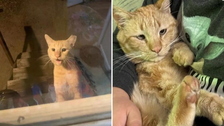 This charming cat hung around a woman’s house every day until he finally set his paw indoors and experienced the cozy warmth of her home. Source: poetssquarecats Reggie, an...