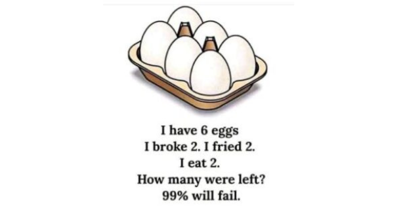 Here’s how you can figure it out: You started with 6 eggs. You broke 2 eggs. You fried 2 eggs (these could be the same eggs you broke...