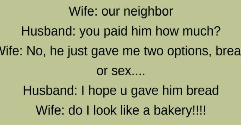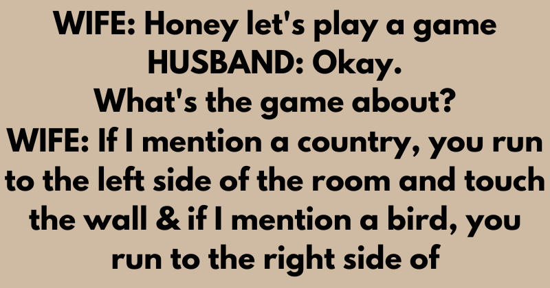 WIFE: Honey let’s play a game HUSBAND: Okay. What’s the game about? WIFE: If I mention a country, you run to the left side of the room and...