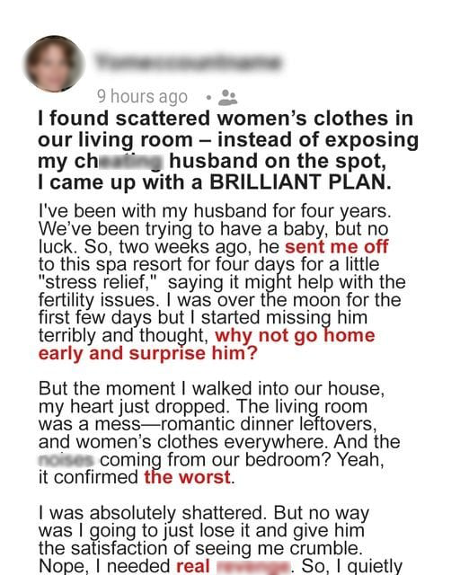 I found scattered women’s clothes in our living room
