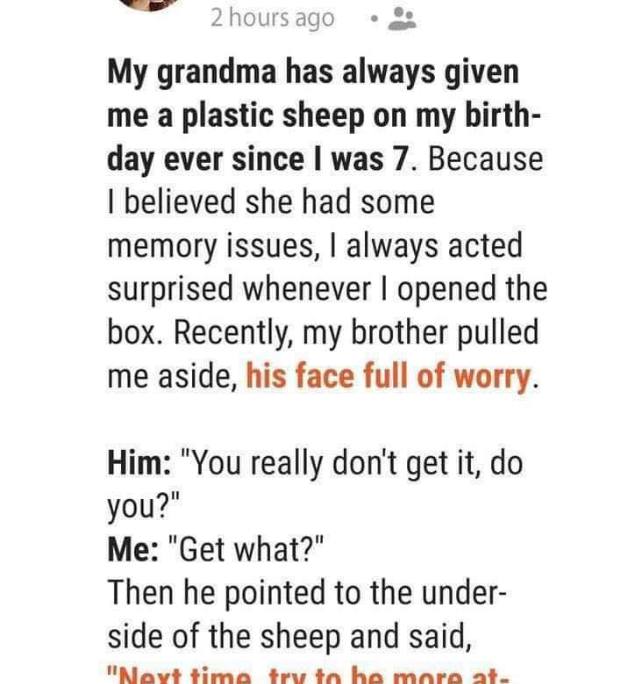 My grandma gave me a plastic sheep on my birthday for years