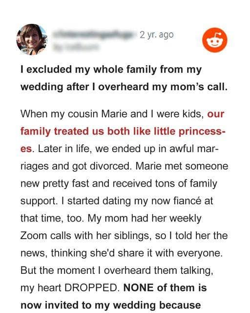 I Excluded My Whole Family from My Wedding after I Overheard My..