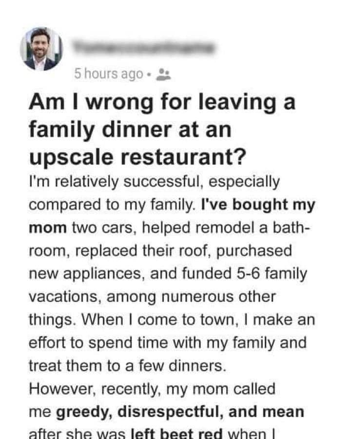 Am I wrong for leaving a family dinner at..
