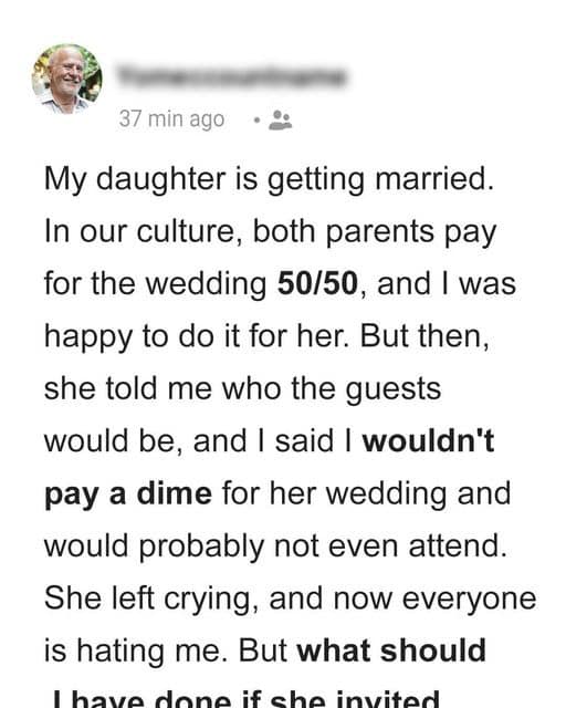 A man had posted on Reddit that he had changed his mind and would not pay for his daughter’s wedding after she had invited his brother, with whom...