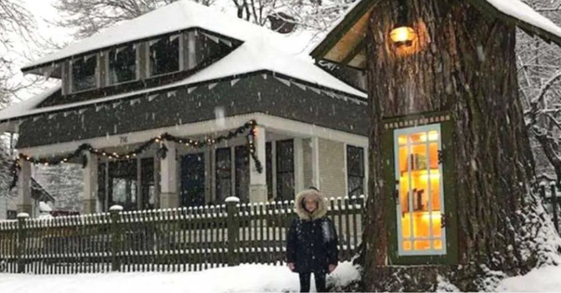 A Charming Trend: Woman Turns A 110-Year-Old Dead Tree Into A Free Library For Her Neighborhood