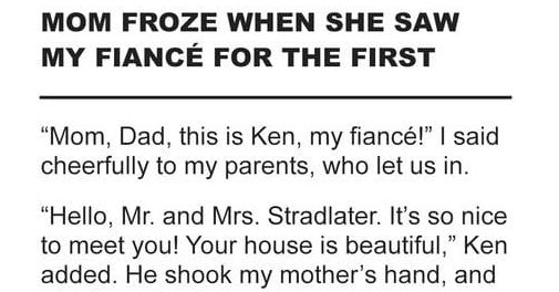 “Mom, Dad, this is Ken, my fiancé!” I said cheerfully to my parents, who let us in. “Hello, Mr. and Mrs. Stradlater. It’s so nice to meet you!...