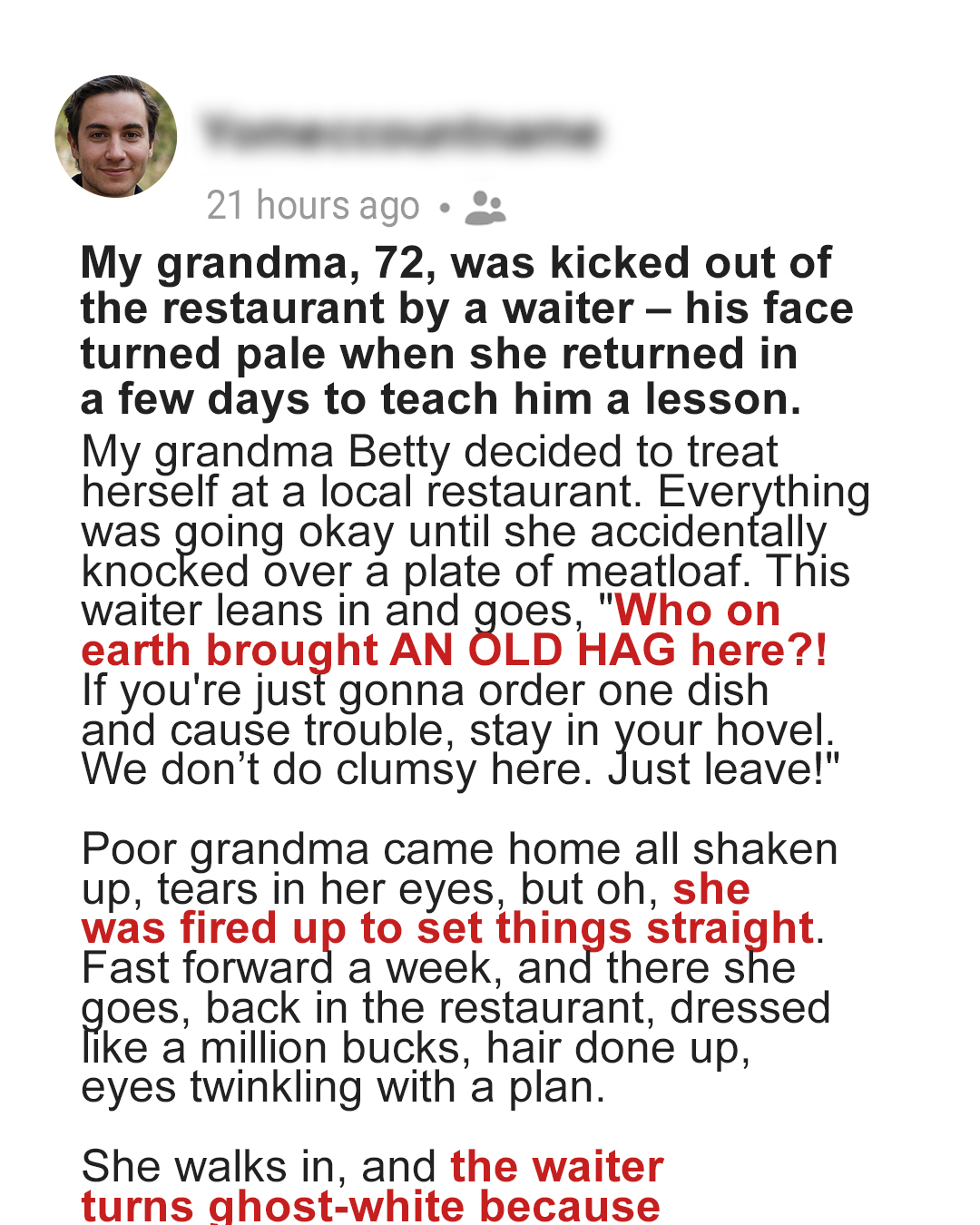 My 72-Year-Old Grandma Was Kicked out of Luxury Restaurant
