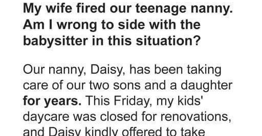 Am I Wrong for Calling Out My Wife for Firing Our Teenage Babysitter?