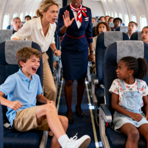 A white boy kept teasing and kicking the seat of a Black girl on the plane — when the flight attendant intervened, his mother snapped, “He’s just a kid, the problem is that Black monkey.” The airline’s response made both mother and son regret it…