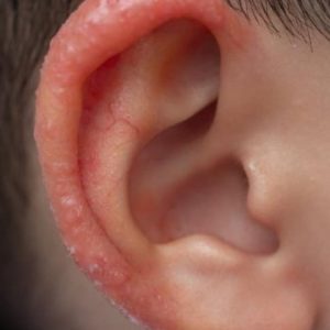 I noticed a strange patch of skin on my son’s ear this morning. His doctor appointment is still a week away — what should I do in the meantime?