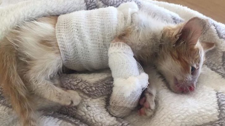 This poor little kitten was saved from a factory where he got seriously hurt. Nobody knows exactly how it happened, but he got stuck in one of the...